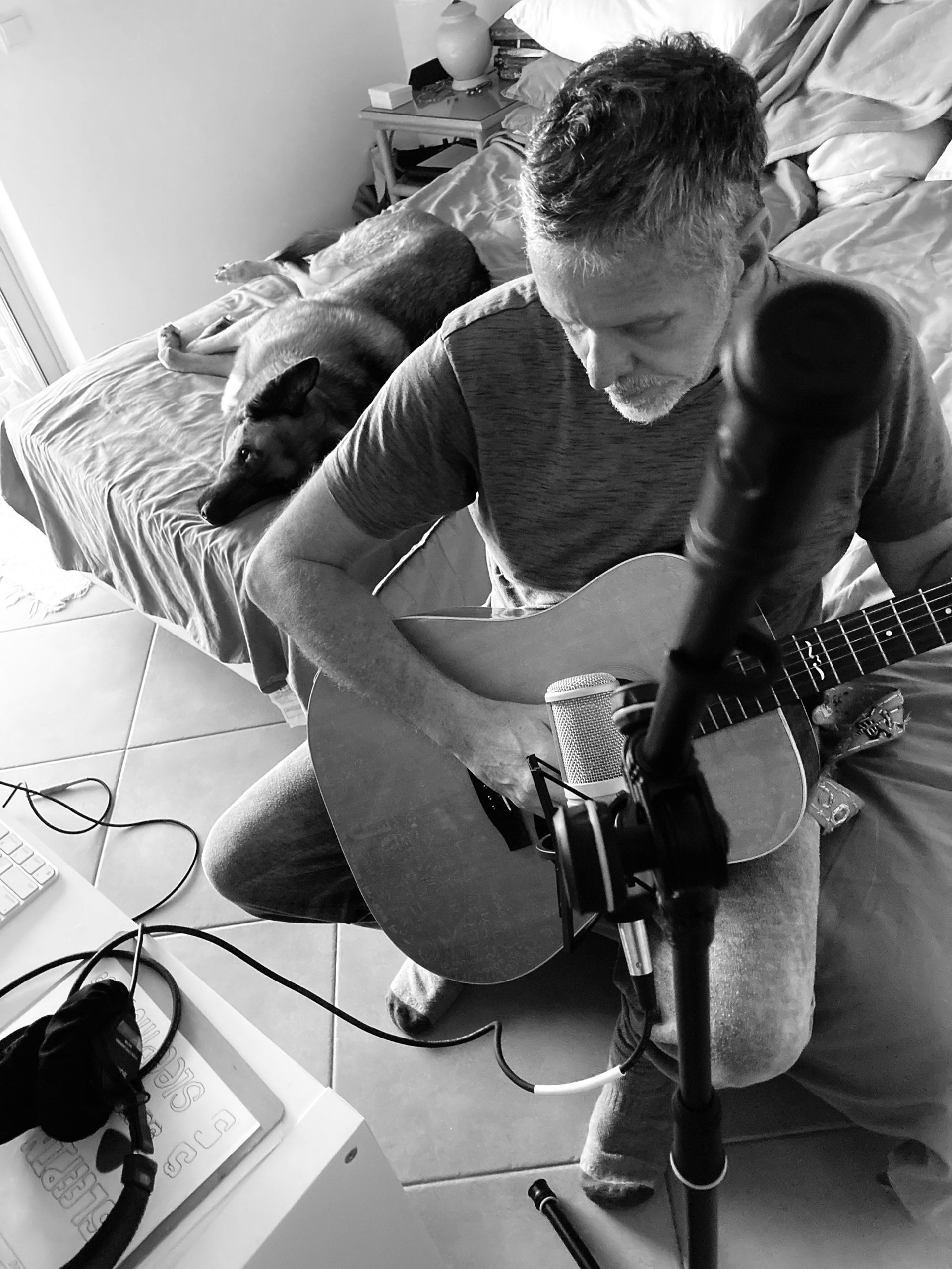 Sleeping Dogs Lie is 30 years of original indie rock music from songwriter, Eric Guenette and musician friends. It started with a Tascam 4-track and a couple of guitars in a small apartment in West Palm Beach, Florida in 1996, with the release of a self-titled cassette tape. The first cd "Joy" was released in 1997. Miami Herald / City Link Magazine music critic Jake Cline said that "David Geffen would be wise to pursue..." The recordings continued with the more lofi experimental "Slightly confusing to a stranger," with a noiser, hissing sound with a wider breadth of styles. The "Nude" album was a more subdued and stripped down sound, focusing more on the songwriting aspect of the music. "Headfirst down the stairs" was released with a massive 22-song album, with high energy and a tilt towards mainstream indie rock. In 2007, the original Sleeping Dogs Lie cassette was remastered and rereleased with the original 12 songs from the cassette, plus 10 new songs. Each cd was hand packaged and loaded with pesonalized artwork. Looking for the next challenge, Guenette decided to write and record an entire album with only found objects and homemade instruments, but keeping the focus on songwriting at the same time. 2009 brought a move to Albuquerque, New Mexico. After a couple of years in Big Sky country, Guenette took yet another artistic swerve into electronic ambient music. No beats, guitars, vocals...Just atmosphere inspired by New Mexico. The album "La Luz" was a big departure from the indie rock vibe from previous records. 2014 brought back a more mature indie rock album called "Mud & sky." After Mud & sky, he began to focus on abstract painting for the next ten years, while still com writing and composing more songs over that time. These songs were slowly simmering for years, but Guenette decided to make a big move to Lagos, Portugal in 2024. As the painting became more diffucult in a small apartment, the music again to center stage. With a decade of songs, he put the finishing touches on the ninth Sleeping Dogs Lie album, "The ordinaire." which is scheduled for release in spring of 2026.